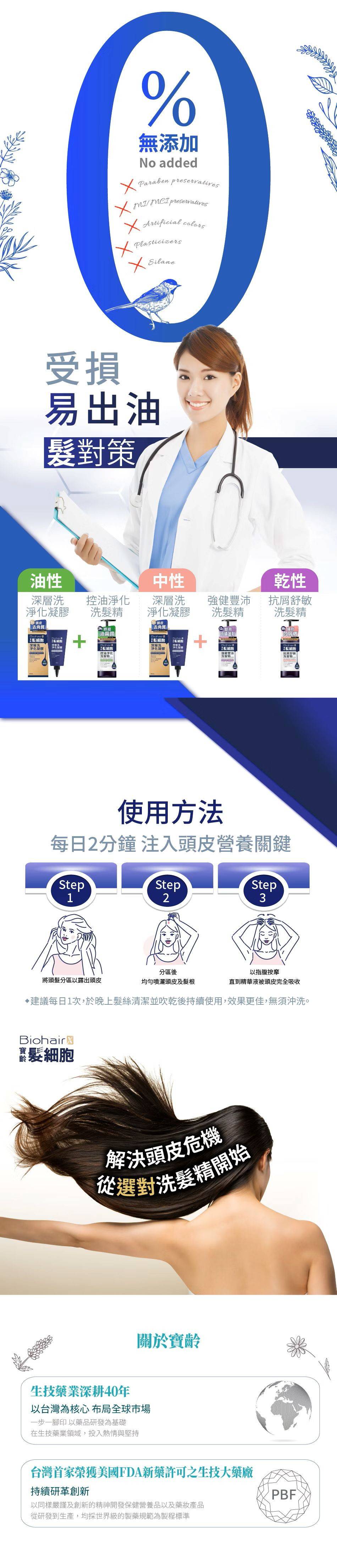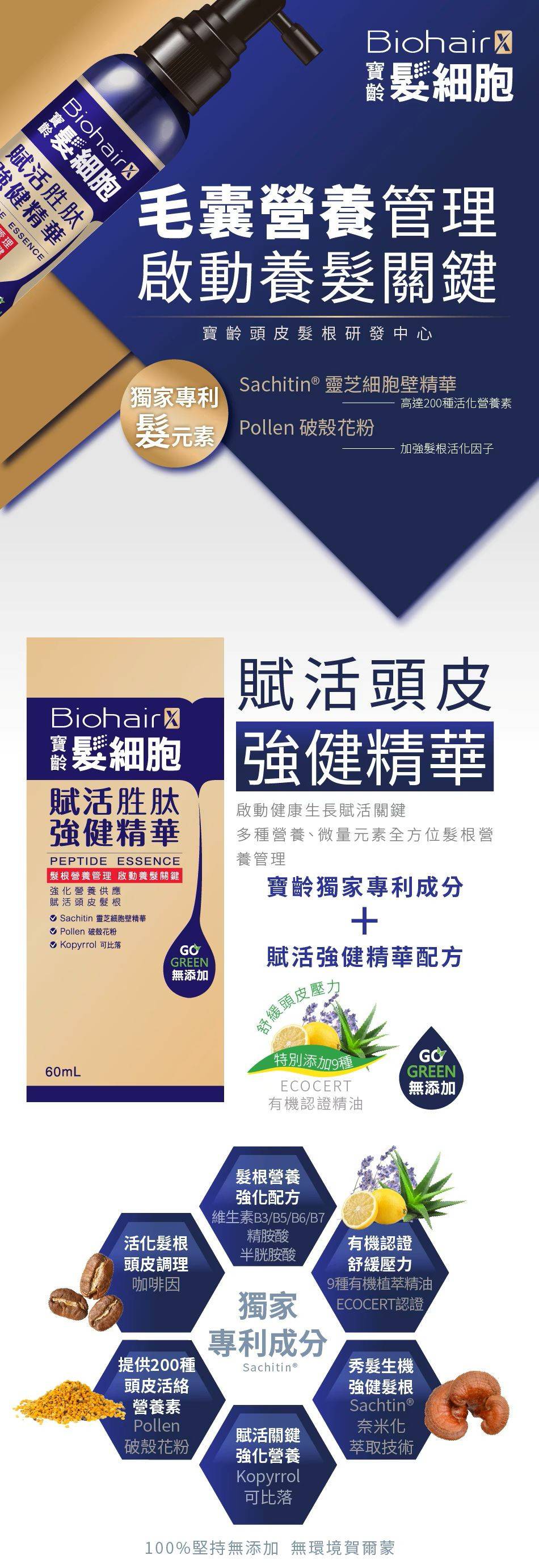 ⏺︎毛囊營養管理,啟動養髮關鍵 ⏺︎寶齡頭皮髮根研發中心 ⏺︎天然破殼花粉,給頭髮生長營養 ⏺︎Kopyrrol強化營養供應、賦活頭皮 ⏺︎破殼花粉、維生素、胺基酸 |