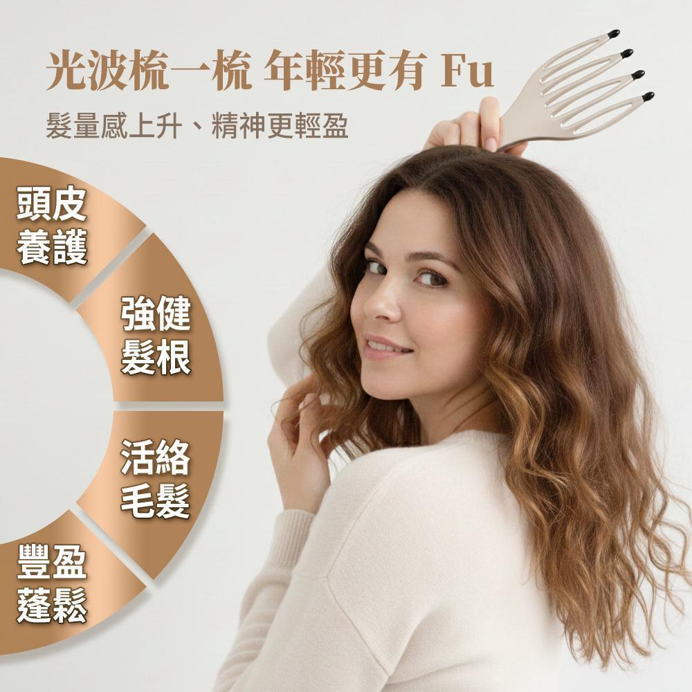 愛迪莫光波能量梳釋放遠紅外線,搭配彈性緩衝設計, 每一下都貼合頭型、輕柔紓壓,幫臉部悄悄提拉。