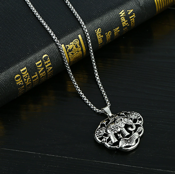 現貨9105|鏤空長命鎖象項鍊J12563-1- 006
